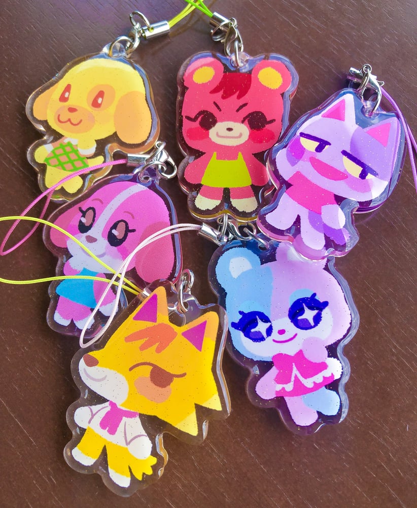 ✦2in acrylic charm with double-sided glitter epoxy ✦Double-sided image ✦Colorful string clasp